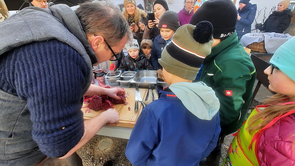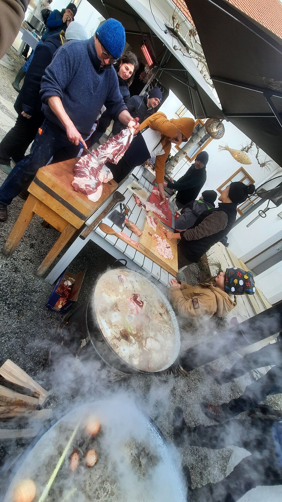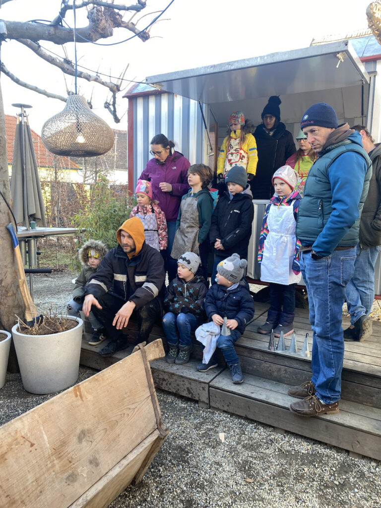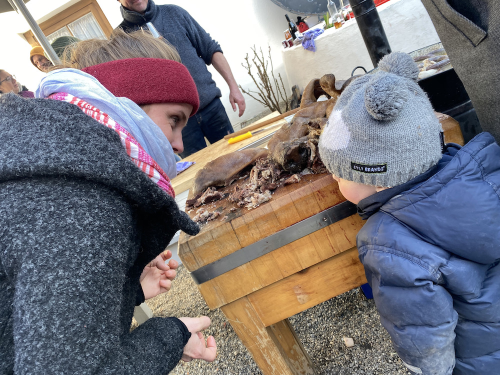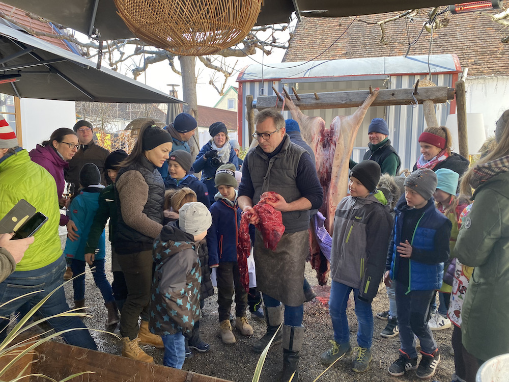 Ich hatte ein großes Programm mit … das ich recht bald über den Haufen geworfen habe. Erstens hatte ich es mit ernährungspädagogischen Profis zu tun, zweitens waren die Teilnehmer*innen auch in Nachhaltigkeitsthemen schon sehr tief eingearbeitet und vor allem drittens nutzten wir die Gelegenheit für den Austausch: Wir diskutierten uns von der Klimawirksamkeit der Rinderhaltung über die wirtschaftlichen Abhängigkeit vom Preisdiktat des LEH über das Fairtrade-Zertifizierungssystem bis zur Produktion von Laborfleisch kreuz und quer durch viele Baustellen der nachhaltigen Ernährung. Die beiden Seminarbäuerinnen und Manuela Hager ließen uns tief ins System (Bio-) Landwirtschaft blicken, einer der zukünftigen Ernährungspädgagog*innen beflügelte uns mit philosophischen Überlegungen, die erfahrenen Pädagog*innen steuerten inspirierende Erfahrungen aus ihrem Unterricht bei.